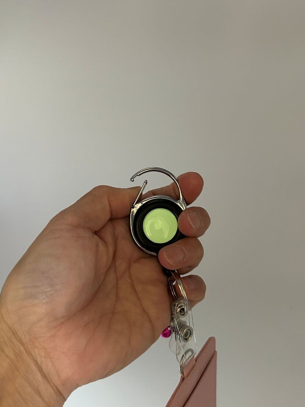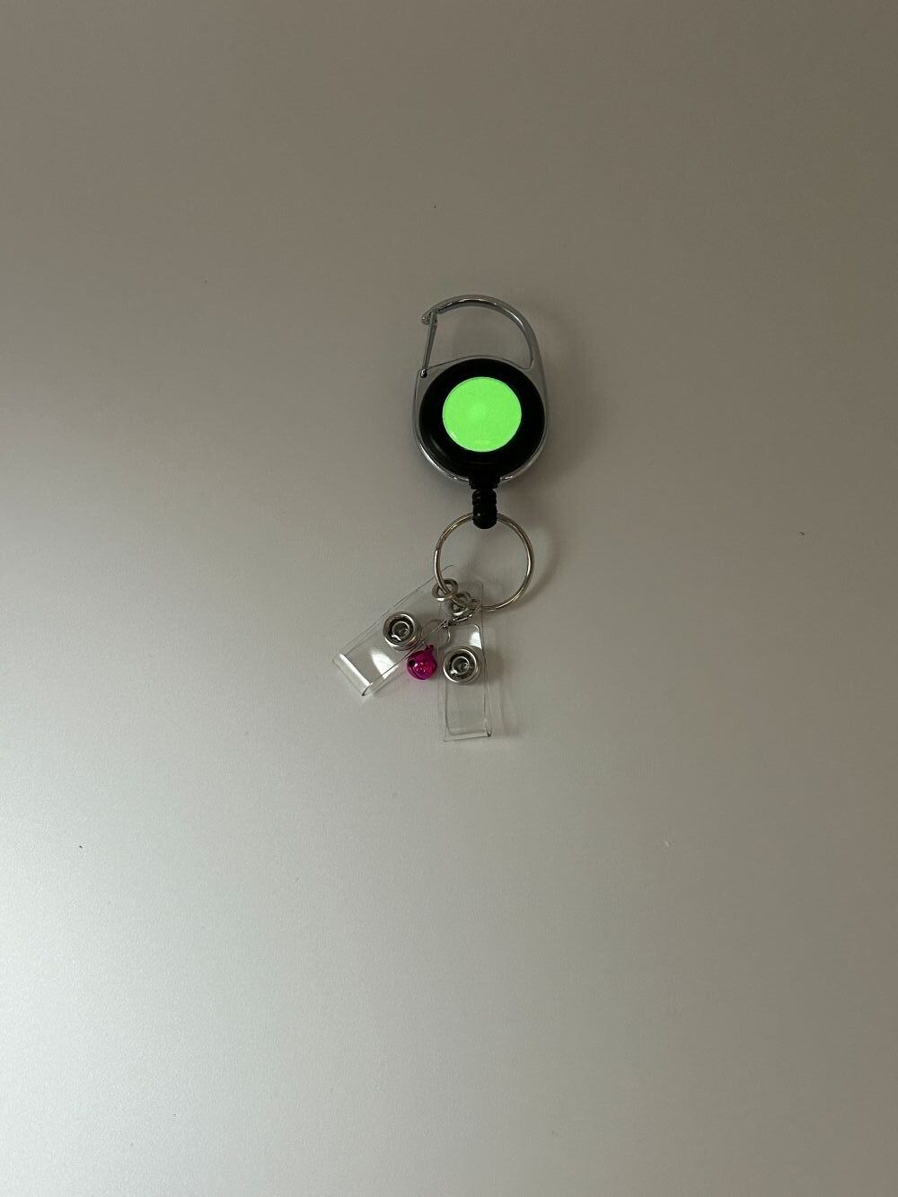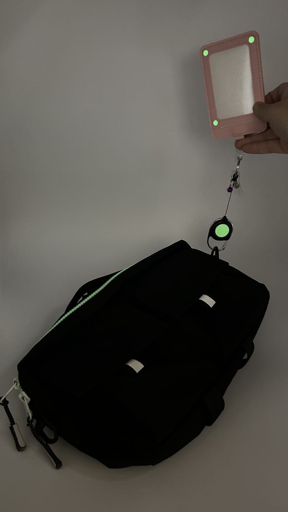 暗い場所で光って目印になる蓄光キーホルダーに、控えめな音の小さな鈴を組み合わせました。蓄光の光は、自分にとって見つけやすく、周囲の人にも「そこにある」と気づいてもらいやすい明るさです。