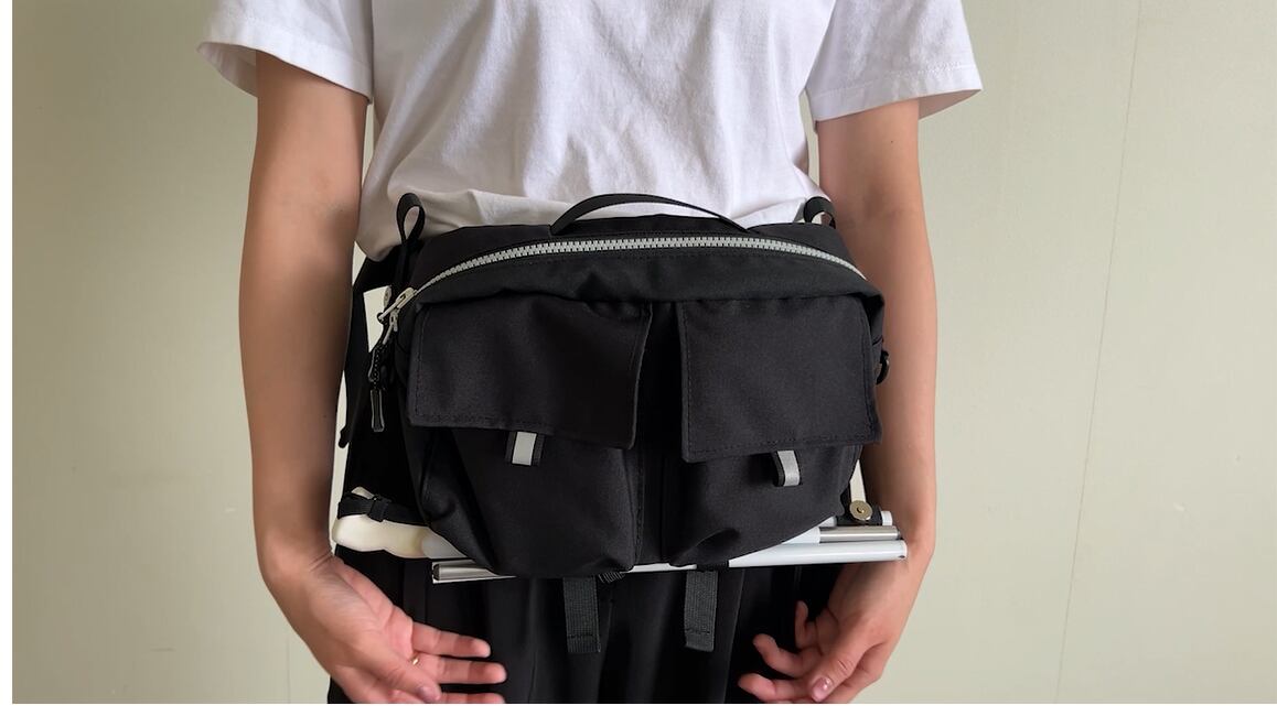 白杖利用者に便利なウエストポーチです!両手が自由になることで、スマホの操作や買い物が驚くほど快適になります。ウエストにしっかりと装着できる設計で、大切なアイテムをすぐに取り出せる利便性を実感できます。